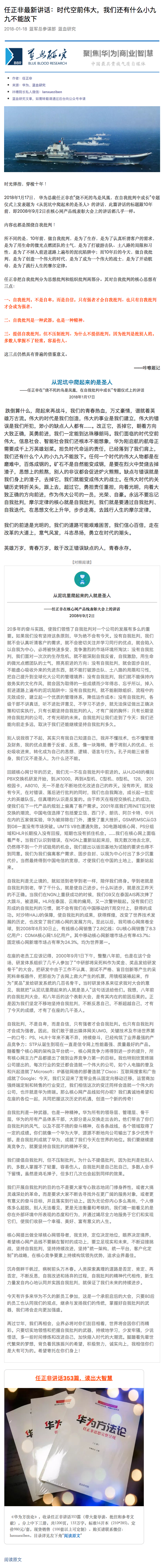 过去几百年来,西方科技像灯塔一样照亮了人类追赶的道路,不仅仅是飞机、火车、汽车、轮船、收音机、卡拉OK……;也不仅仅是欧拉公式、拉格朗日方程、傅里叶变换、门捷列夫元素周期表……;也不仅仅是贝多芬、歌德、米开朗基罗、托尔斯泰……;他们对人类文明进步的贡献,是我们敬仰的。在美欧日俄……等国的灯塔照耀下,整个世界都加快了追赶步伐。今天的人类繁荣与英欧美日的“灯塔”是分不开的。我们要尊重这些文明国家、尊重先作出贡献的先辈。孔子都二千多年,我们还不是在尊孔吗?今天我们已积累到一定程度了,也想要学习在无人区点亮5G的灯塔,作出我们应有的贡献,回报世界给我们的引导,让我们的光辉也照亮大家共同前行。当我们尝试迈出第一步,刚刚擦亮一根火柴,企图点亮一座灯塔时,就受到美国的不理解,不理智的一棒打下来,一开始我们还真以为是我们合规犯了什么错误,在自查自纠;接着第二棒、第三棒又打下来,一棒比一棒狠,我们才知道是要打死我们,并不是小羊在上游喝了什么水。求生的欲望,使我们振奋起来了。全体员工表明了,“宁可向前一步死,决不后退半步生”。我们并不以此灰心,我们也不会怨恨,美国仍然是世界的科技灯塔,我们仍然要一切向先进的人学习。当前科技的进步已超过人类的迫切需求,一项科技发明并不能创造一个大产业、创造超额利润。像蒸汽机、电动机的出现那样,就改变了一个世界,现在需要全世界的合力,才能完成一个产品、一个产业。科技发展正处在一个饱和曲线的平顶端,付出巨大的努力,并不能有对等的收益,反而给追赶者减少了追赶的困难。例如,我们每年投入研发经费是200亿美元,但收益只有研发投入的40%,60%的蜡烛在黑暗的探索之路燃尽了。我们仍无怨无悔的努力攀登,也像欧、美、日、俄等国领先公司一样,像蜡烛燃烧自己,也照亮别人。